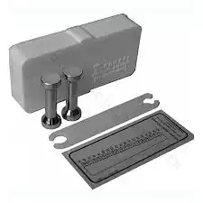 Комплектация тонометра НГм2-ОФТ-П включает два металлических грузика массой 10 грамм каждый, оснащенных гладкими стеклянными пластинками. Для удобства работы предусмотрены три измерительные линейки и специальный держатель, обеспечивающий надежное удержание грузиков в процессе процедуры. Весь набор поставляется в компактном футляре, который облегчает хранение и транспортировку прибора.