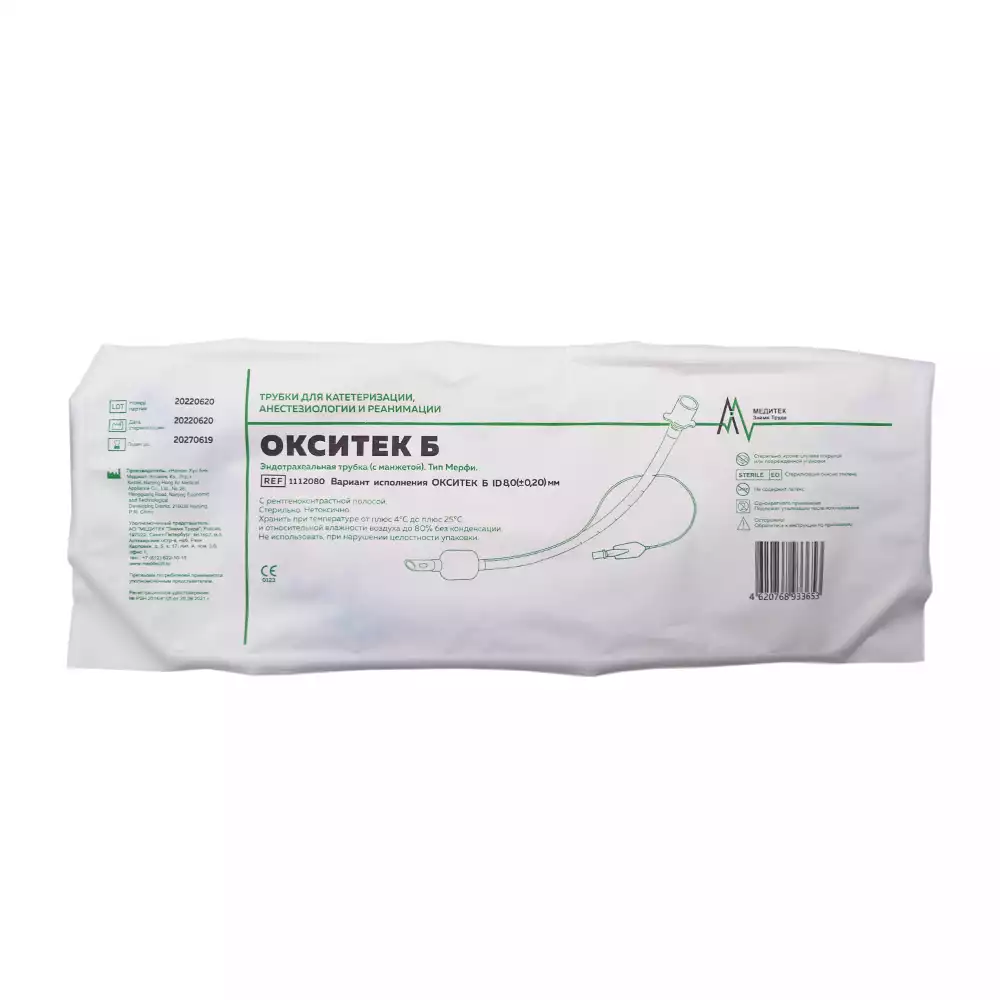 Трубка эндотрахеальная Окситек Б, №8,0 с манжетой, коннектор 15мм, наличие РКП, стерильная