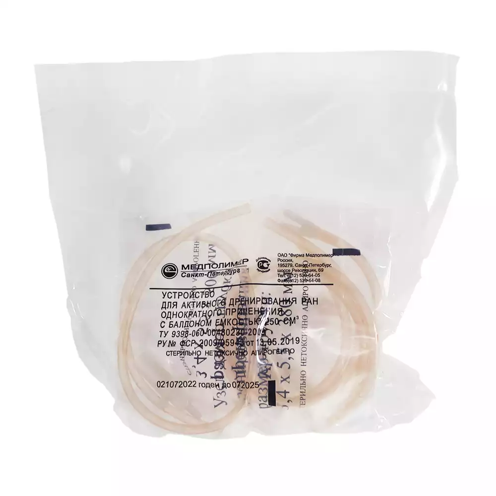 Устройство дренирования ран УДР с баллоном 250см3, длина дренажных трубок 380мм и 500мм, наружный диаметр трубок 5,5мм, одноразовое стерильное