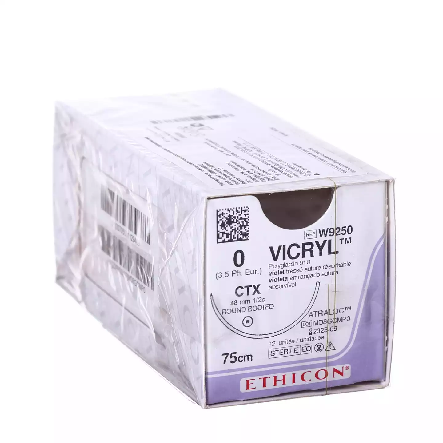 Викрил М3,5 (0) длина 75см, игла колющая СТХ 1/2 окружности 48 мм, фиолетовый, упаковка 12шт,W9250