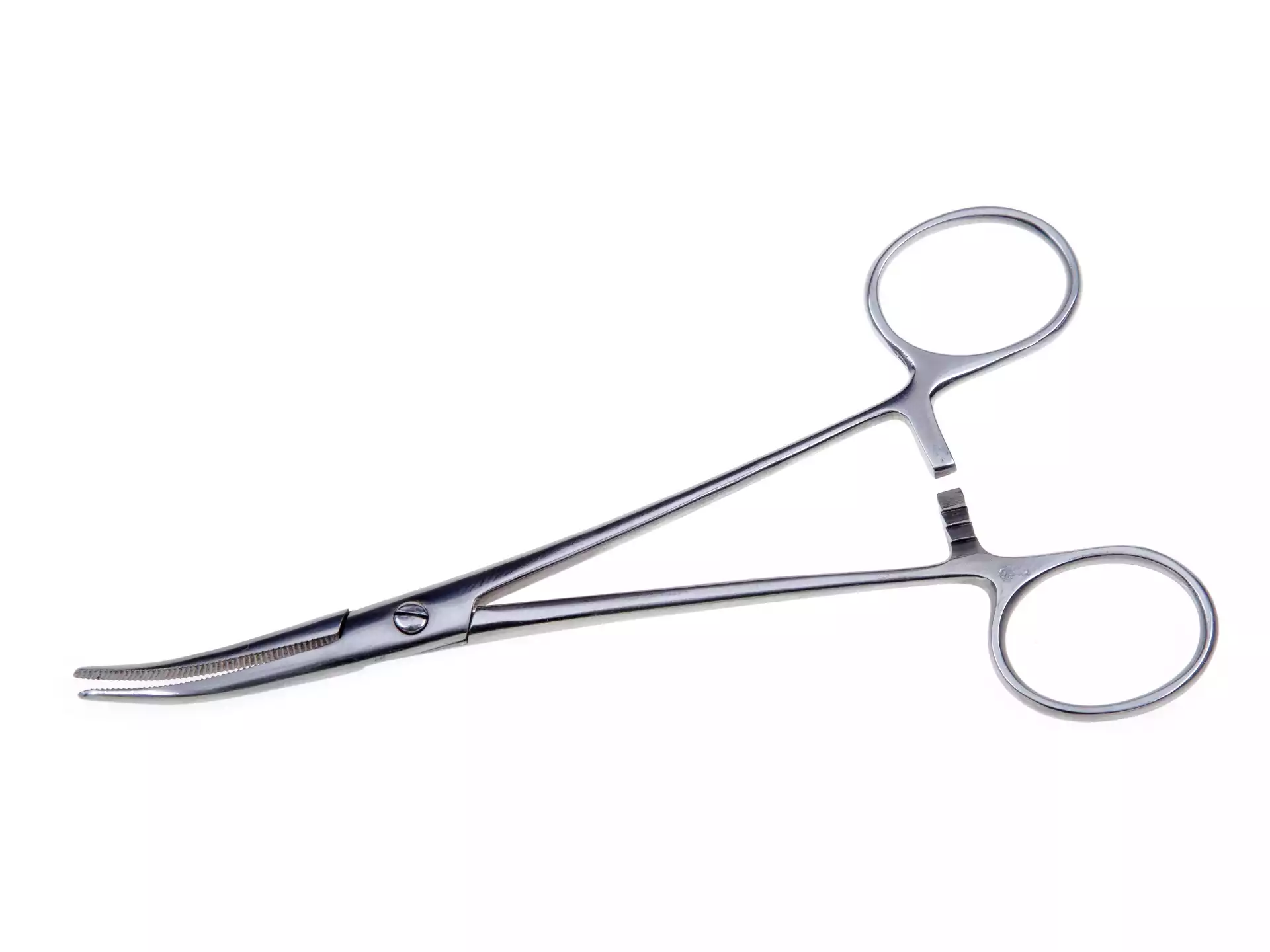 Зажим З-69 кровоостанавливающий зубчатый изогнутый №1, длина 158мм