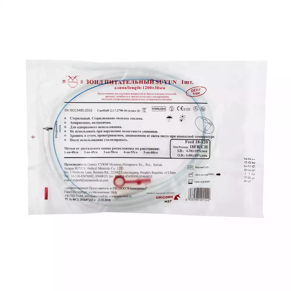 Зонд питательный CH-18, длина 120 см, диаметр 4,5/6,0мм, стерильный, бесцветный